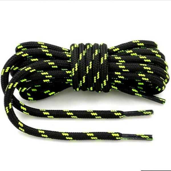 2 Pairs Round High Density Weaving Shoe Laces Outdoor Hiking Slip Rope Sneakers Boot Shoelace, Length:100cm(Black-Fluorescent Green)
