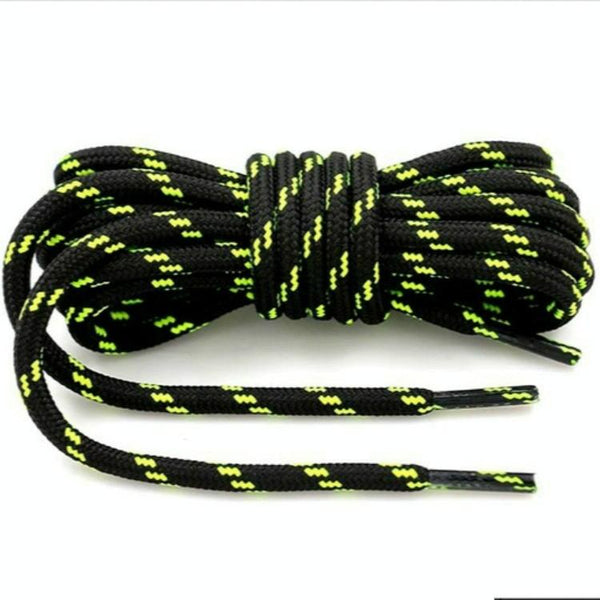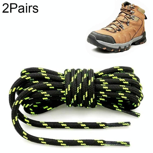 2 Pairs Round High Density Weaving Shoe Laces Outdoor Hiking Slip Rope Sneakers Boot Shoelace, Length:120cm(Black-Fluorescent Green)