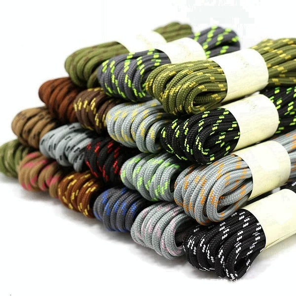 2 Pairs Round High Density Weaving Shoe Laces Outdoor Hiking Slip Rope Sneakers Boot Shoelace, Length:120cm(Light Brown-Rose Red)