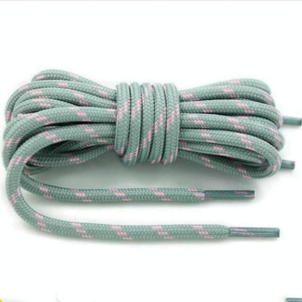 2 Pairs Round High Density Weaving Shoe Laces Outdoor Hiking Slip Rope Sneakers Boot Shoelace, Length:140cm(Light Gray-Pink)