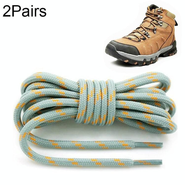 2 Pairs Round High Density Weaving Shoe Laces Outdoor Hiking Slip Rope Sneakers Boot Shoelace, Length:160cm(Light Gray-Orange)