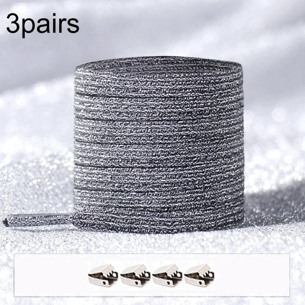 3pairs Elastic No Tie Shoelaces Metal Lock Dazzling Color Laces 100cm(Silver Black)
