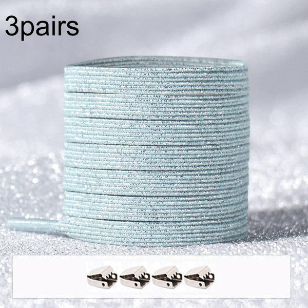 3pairs Elastic No Tie Shoelaces Metal Lock Dazzling Color Laces 100cm(Silver Green)