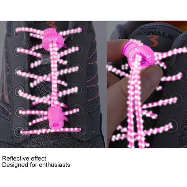 AONIJIE Unisex Adjustable Elastic Reflective Sports Lace Quick Lock Shoelace(Magenta)