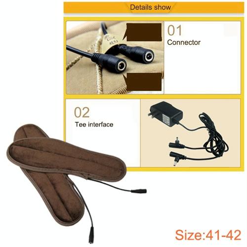 Lithium Battery Powered & Rechargeable Heated Insoles Keep Feet Warm Pad, Keep Warm 8-9 hours, Size: 41-42 yard(Brown)