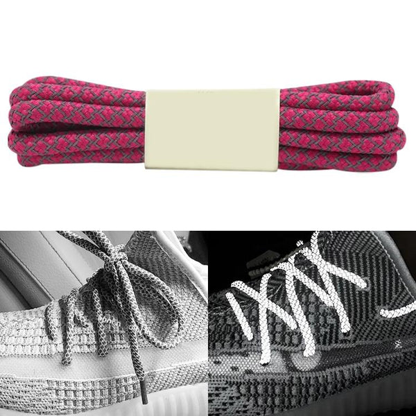 Reflective Shoe laces Round Sneakers ShoeLaces Kids Adult Outdoor Sports Shoelaces, Length:160cm(Rose Red)