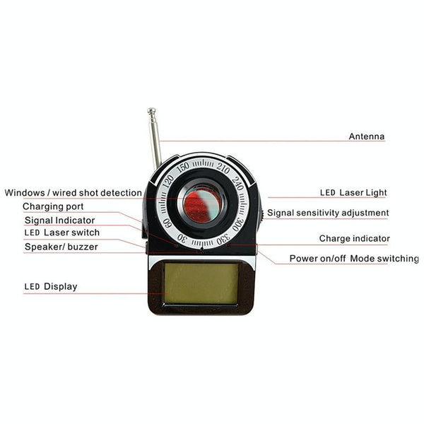 Protect your privacy with this advanced RF Detector & Camera Finder (Bug Sweeper). Discreetly detect hidden cameras, eavesdropping devices, and GPS trackers with laser scanning and RF detection. This powerful anti-spy device safeguards your personal information and confidential data from unwanted surveillance.
