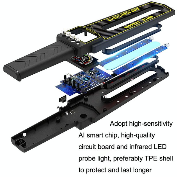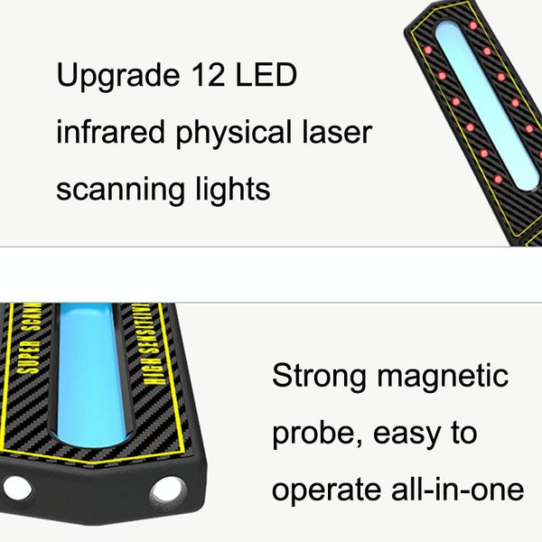 Detect hidden threats with our Anti-Spy RF Detector. This powerful device sweeps for bugs, hidden cameras, GPS trackers, and RF signals, ensuring your privacy and security. Featuring AI-powered intelligent detection and a high-sensitivity chip, it quickly identifies suspicious signals within a 0.1-10 metre range (1-8000MHz). The 12 LED infrared laser scanning lights and special optical filter enhance detection capabilities, even uncovering concealed devices. A visual LED display with 10-level wireless frequency modulation pinpoints the threat's location. The durable TPE shell, precise scale rotating disc, and strong magnetic probe ensure easy operation and long-lasting performance. Rechargeable via USB, the built-in 300mAh lithium battery provides convenient portability. Ideal for use in hotels, cars, conference rooms, and anywhere privacy is paramount. Protect yourself from unwanted surveillance with this essential security tool.