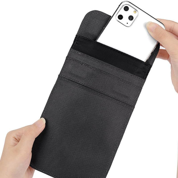 Protect your privacy and digital security with this RFID Signal Blocking Bag. Designed for phones up to 6.5 inches (19x12 cm), this dark grey pouch safeguards your personal data from unauthorised access. The nano shielding fibre lining effectively blocks GPS tracking, RFID signals, and mobile phone signals, preventing unwanted location tracking, data theft, and relay attacks. Its airtight, magnetic closure ensures a secure seal, while the compact design allows for easy one-handed use. More than just phone protection, this versatile bag doubles as a convenient card holder for ID cards, bank cards, driving licences, and more. The precise stitching and durable construction guarantee long-lasting protection for your valuables.