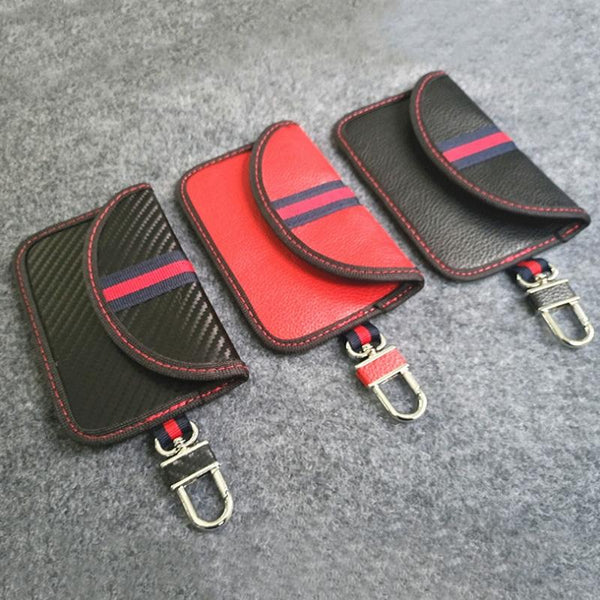 Keywords: RFID blocking, car key case, keyless entry, car key protector, signal blocker, carbon fibre, PU leather, theft prevention, car security, key fob case
