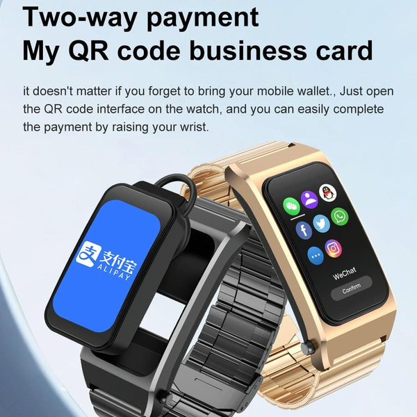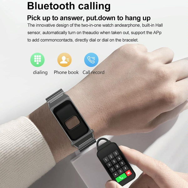 A8 1.98 inch 2 in 1 Bluetooth Earphone Silicone Strap Smart Watch, Support ECG / NFC(Brown)