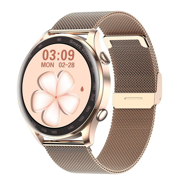 AK32 1.36 inch IPS Touch Screen Smart Watch, Support Bluetooth Calling/Blood Oxygen Monitoring,Style: Steel Watch Band(Gold)