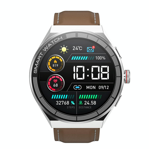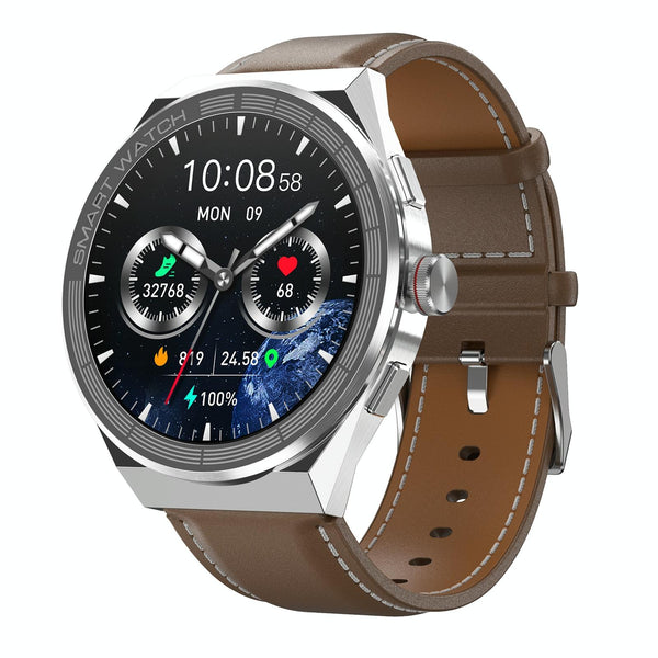 BM01 1.45 inch Leather Band IP68 Waterproof Smart Watch Support Bluetooth Call / NFC(Silver)