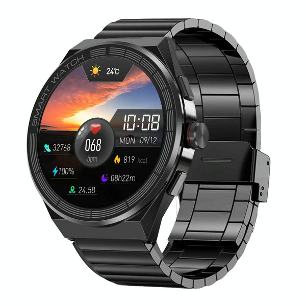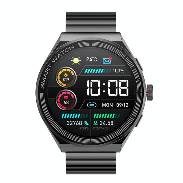 BM01 1.45 inch Steel Band IP68 Waterproof Smart Watch Support Bluetooth Call / NFC(Black)