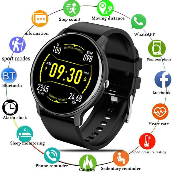 4. Functions: waterproof, audio-visual entertainment, photo taking, step counting, social entertainment, smart reminder, remote Selfie, information push, motion tracking, mobile positioning, tracking/alarm, health monitoring, sleep analysis