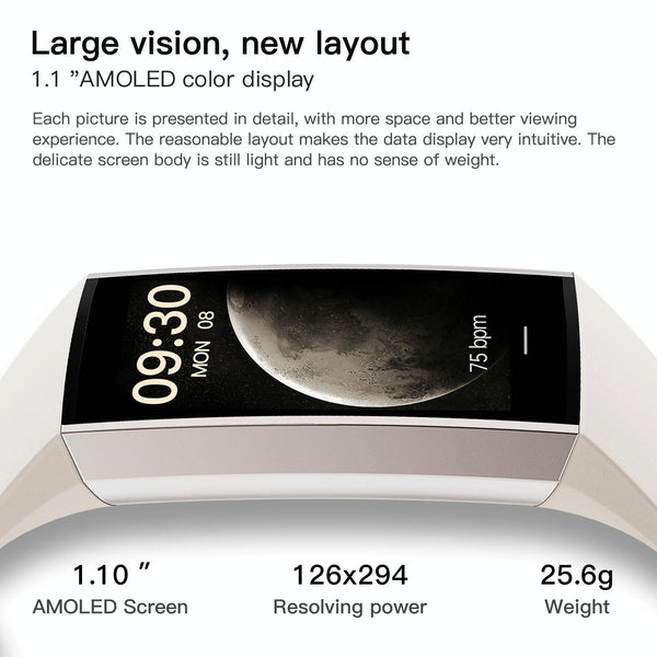 2. 1.1-inch display: Adopting AMOLED HD Touch color screen design and exquisite visual display, it provides you with a high-quality touch and visual experience, making all incoming call and text message reminders extremely clear and enjoying a wonderful view.