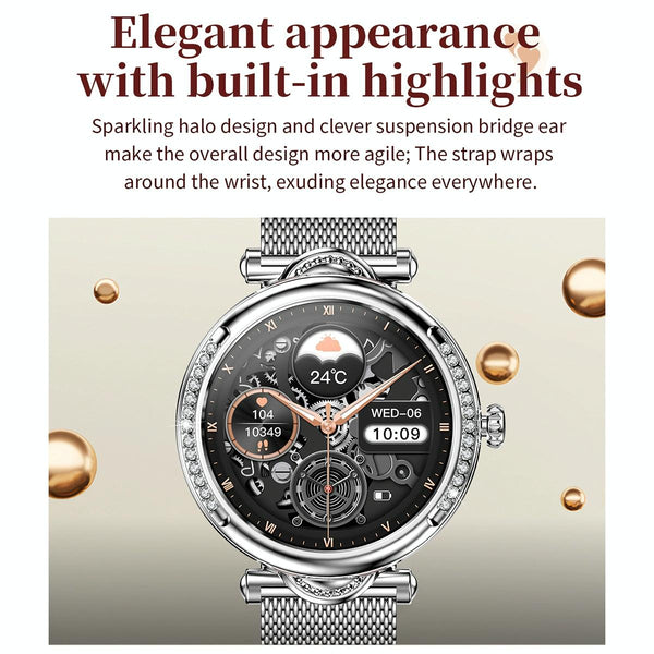 CF32 1.27 inch Screen Lady Smart Watch, Steel Band, Support Female Physiology Monitoring & 100+ Sports Modes(Gold)