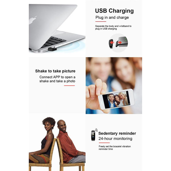10. Main features: continuous heart rate test, remote care, pedometer, calories, distance, sleep monitoring, call reminder, alarm reminder, hand-on bright screen, social sharing (WeChat, QQ, Facebook, Twitter), shake hand to take phonto, etc.