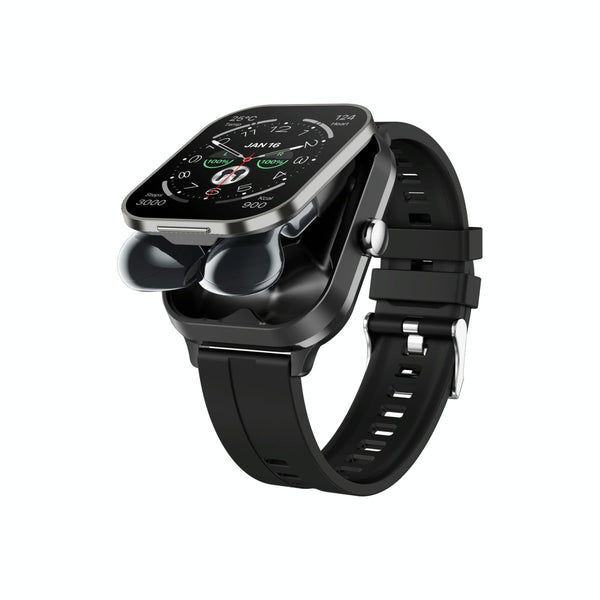 D8 Pro 2.01 inch 2 in 1 Bluetooth Earphone Silicone Strap Smart Watch, Support NFC with Cover(Black)