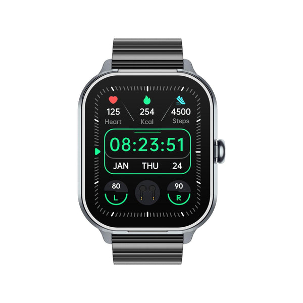 D8 Pro 2.01 inch 2 in 1 Bluetooth Earphone Steel Strap Smart Watch, Support NFC with Cover(Space Grey)