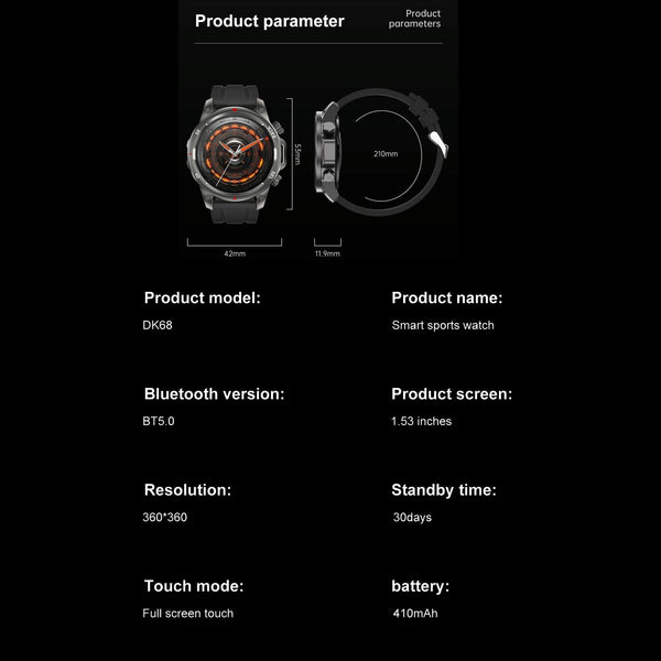 DK68 1.53 inch IP67 BT 5.0 Fitness Sport Smart Watch, Support LED Flashlight / Bluetooth Call / Sleep / Blood Oxygen / Heart Rate / Blood Pressure Health Monitor(Black)