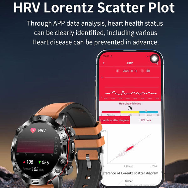 3. HRV function, AI medical diagnosis, Mett function, SOS emergency call function, temperature monitoring, blood oxygen monitoring, blood pressure monitoring