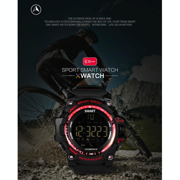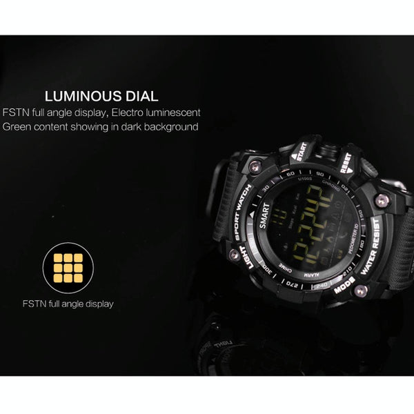 EX16 1.12 Inch FSTN LCD Full Angle Screen Display Sport Smart Watch, IP67 Waterproof, Support Pedometer / Stopwatch / Alarm / Notification Remind / Call Notify / Camera Remote Control / Calories Burned, Compatible with Android and iOS Phones(Black)