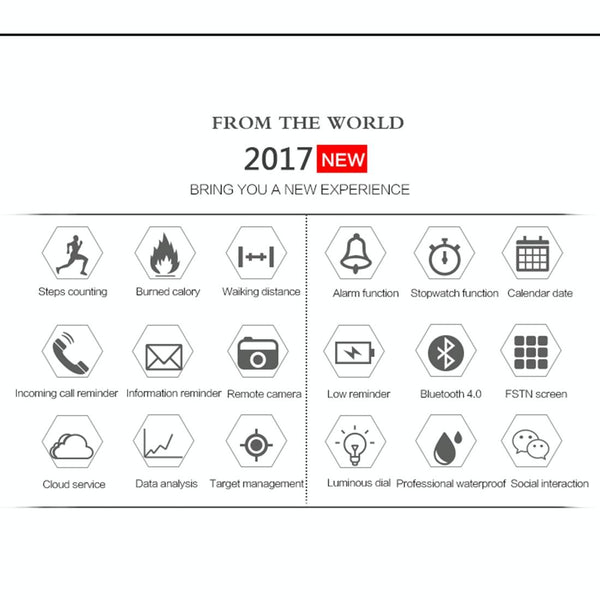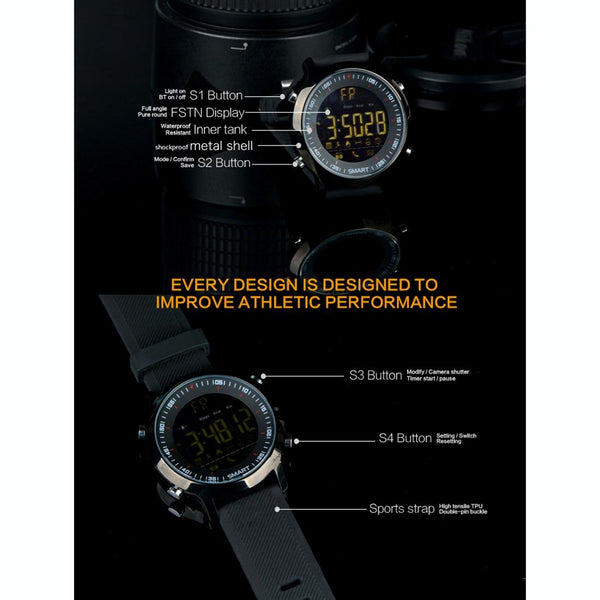 EX18 Smart Sports Watch FSTN Full View Screen Luminous Dial High Tensile TPU Strap, Support Steps Counting / Burned Calory / Calendar Date / Bluetooth 4.0 / Incoming Call Reminder / Low Battery Reminder(Black)