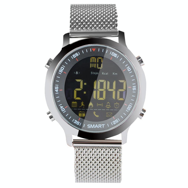 EX18 Smart Sports Watch FSTN Full View Screen Luminous Dial Stainless Steel Strap, Support Steps Counting / Burned Calory / Calendar Date / Bluetooth 4.0 / Incoming Call Reminder / Low Battery Reminder(Silver)