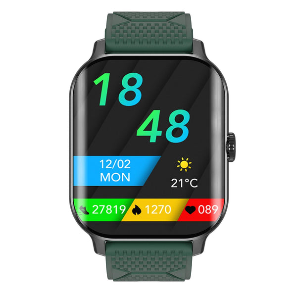 F12 2.02 inch Curved Screen Smart Watch Supports Voice Call/Blood Sugar Detection(Black + Green)