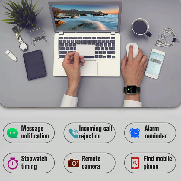 16. Functions: body temperature monitoring, sleep monitoring, heart rate monitoring, blood pressure, blood oxygen, pedometer, distance, calories, stopwatch, multi-sports mode (running, cycling, swimming, mountain climbing), call reminder, information reminder, alarm clock reminder, Sedentary reminder, reminder to drink water, reminder to drink medicine, remote camera, etc.