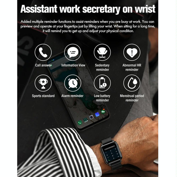 12. Main functions: making and receiving calls, music playback, heart rate monitoring, blood pressure monitoring, step counting, distance, calories, sleep monitoring, stopwatch, countdown, call reminder (caller number/name), message reminder, alarm clock reminder, sedentary reminder , connect to TWS, audio, remote camera, etc.