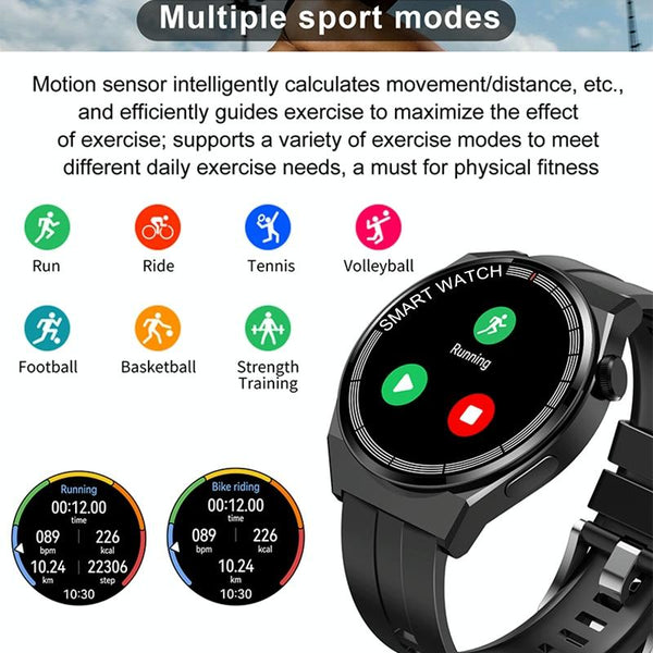 1. Functions: NFC access control, health three rings, heart rate/blood pressure/blood oxygen monitoring, ECG monitoring, Bluetooth calling, Bluetooth music, sleep monitoring, call reminder, text message reminder, social APP message reminder, alarm clock reminder, sedentary reminder, Multi-sport, turn your wrist to light up the screen, find your bracelet, find your phone, take photos remotely, do not disturb mode, dial customization, airplane mode, frequently used contacts, SIRI, music control, weather, etc.