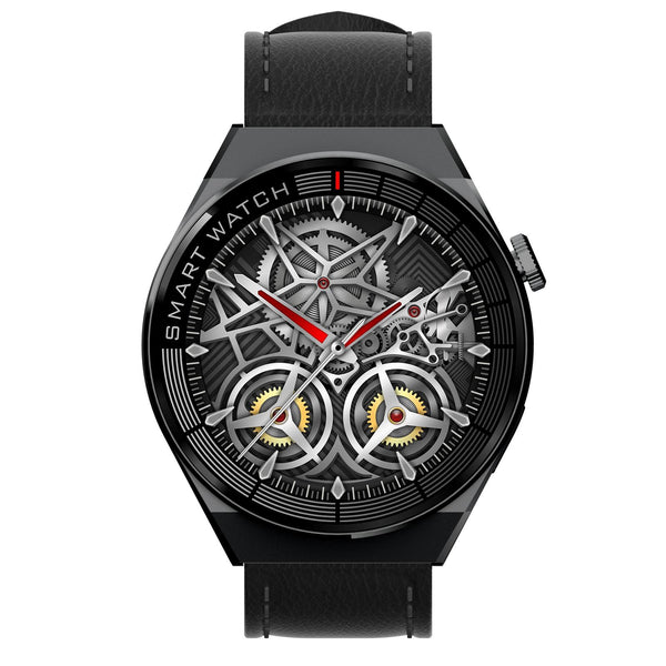 GW69 Plus Smart Watch, Support BT Call / Heart Rate / Blood Pressure / Blood Oxygen(Black + Leather Strap Black)