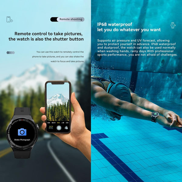 - Dial selection, message push, daily alarm clock, photo control, weather information, WeChat sports