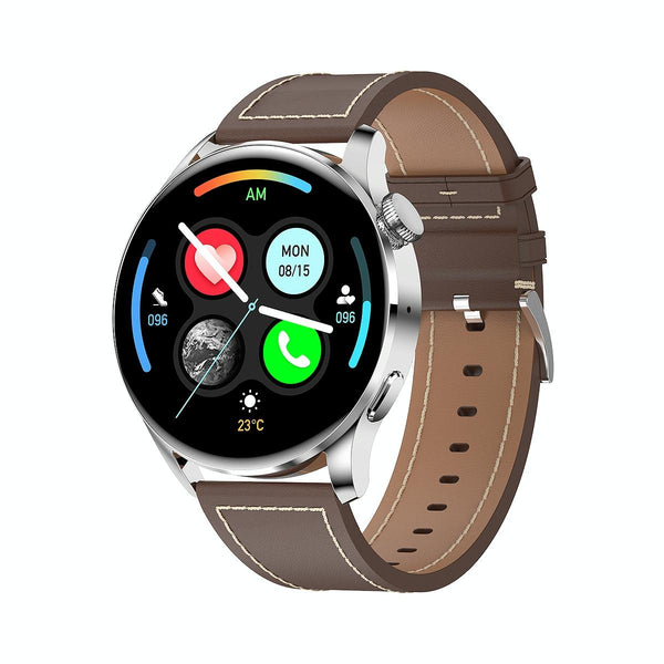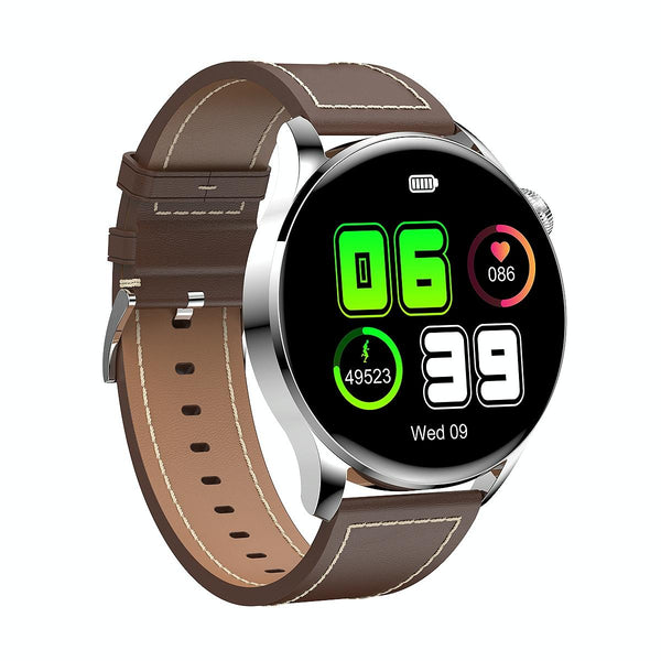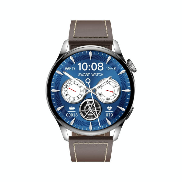 GW69 Smart Watch, Support BT Call / Heart Rate / Blood Pressure / Blood Oxygen(Sliver + Leather Strap Brown)