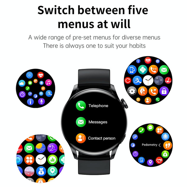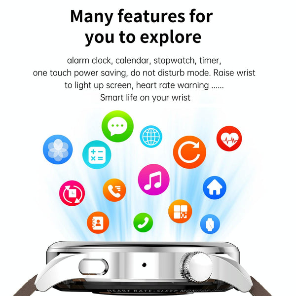 - Dial selection, message push, daily alarm clock, photo control, weather information, WeChat sports