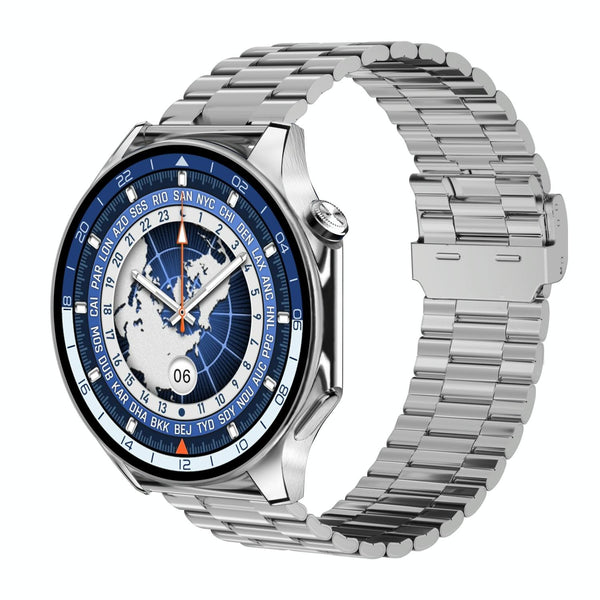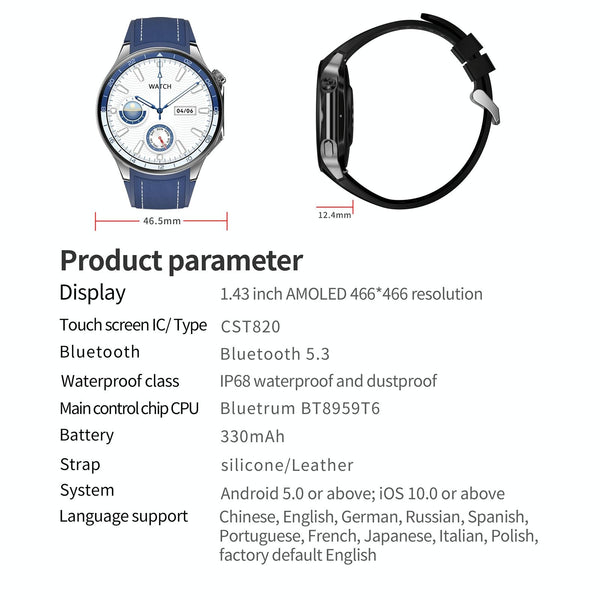HD Watch X 1.43 inch IP68 BT5.3 Sport Smart Watch, Support Bluetooth Call / Sleep / Blood Oxygen / Heart Rate / Blood Pressure Health Monitor(Silver Steel + Blue Silicone Strap)