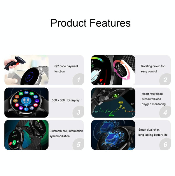HD3 1.32 Inch Heart Rate Monitoring Smart Watch with Payment Function(Silver Steel)