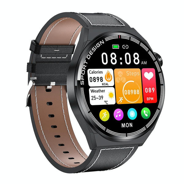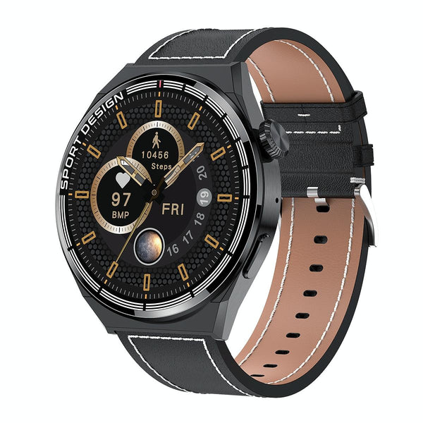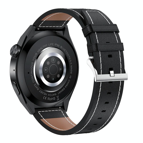 HDT MAX 1.60 inch Black Dial Leather Band IP68 Waterproof Smart Watch Support Bluetooth Call(Black)