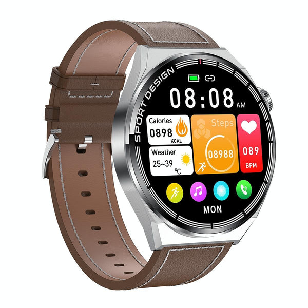 HDT MAX 1.60 inch Silver Dial Leather Band IP68 Waterproof Smart Watch Support Bluetooth Call(Brown)