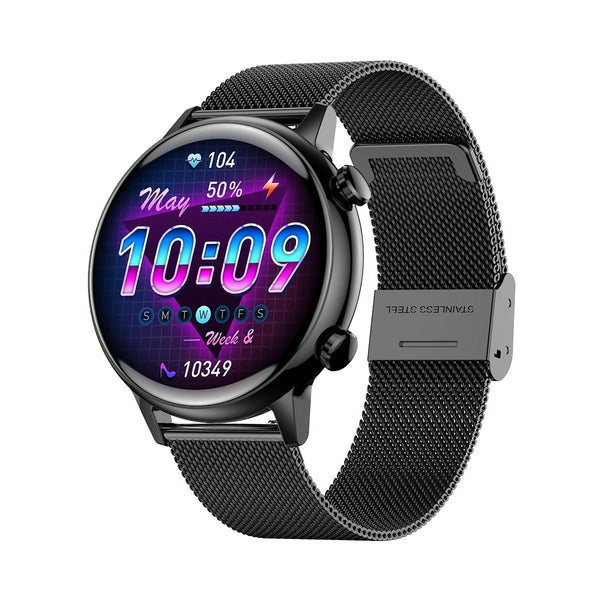 HK39 1.1 inch Smart Stainless Steel Band Watch Support Bluetooth Call/Blood Oxygen Monitoring(Black)