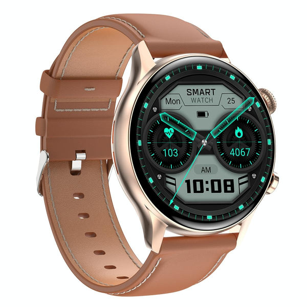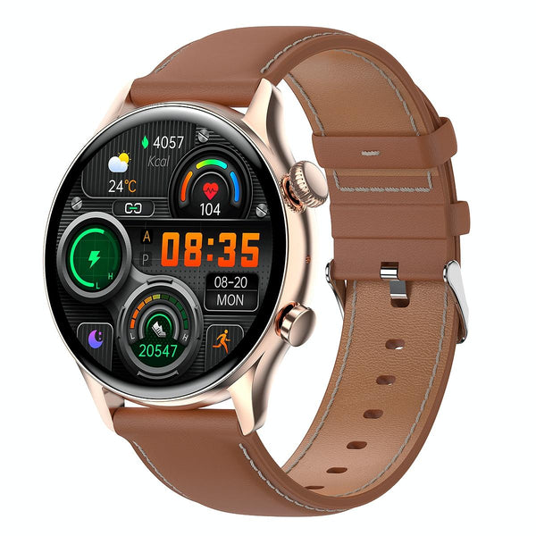 HK8Pro 1.36 inch AMOLED Screen Leather Strap Smart Watch, Support NFC Function / Blood Oxygen Monitoring(Gold)