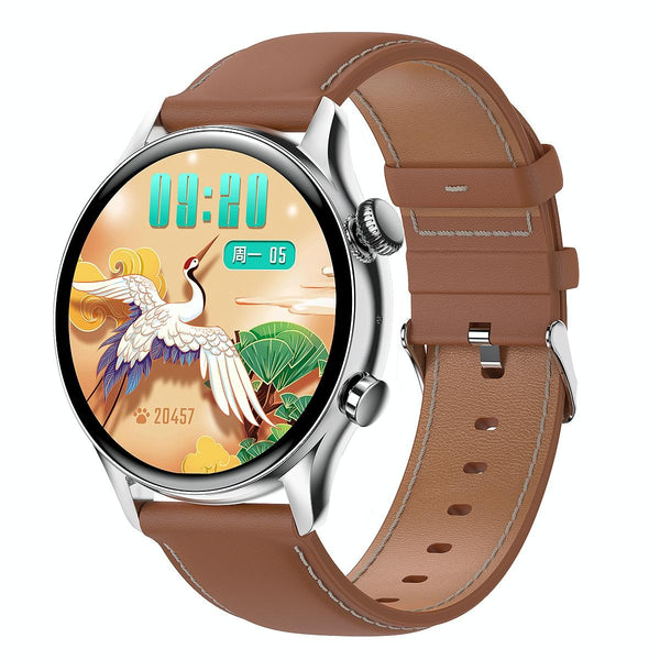 HK8Pro 1.36 inch AMOLED Screen Leather Strap Smart Watch, Support NFC Function / Blood Oxygen Monitoring(Silver)