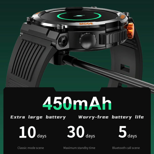 HT17 1.46 inch Round Screen Bluetooth Smart Watch, Support Health Monitoring & 100+ Sports Modes(Black)