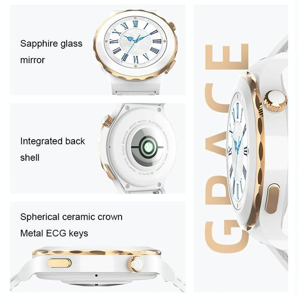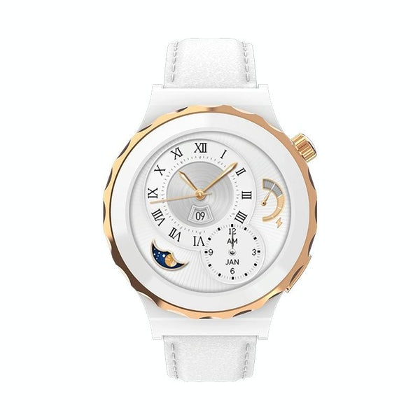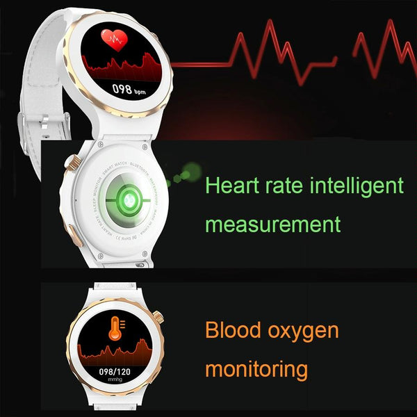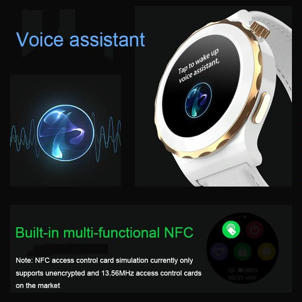 HW3 Mini Heart Rate/Blood Oxygen Monitoring Smart Watch with NFC Function(Gold Shell White Leather)