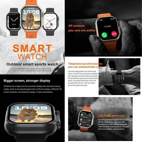 iW9 Ultra 2.04 inch Screen Smart Call Watch, BT Call / Heart Rate / Blood Pressure / Blood Oxygen(Orange Gold)