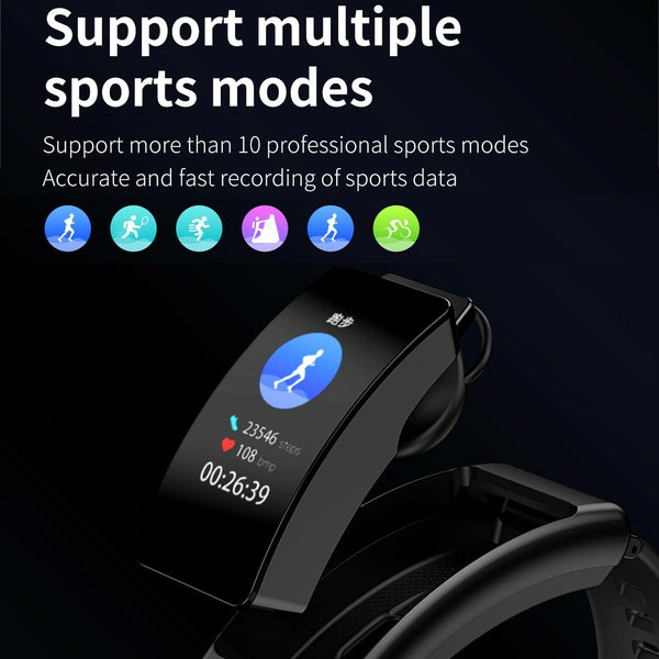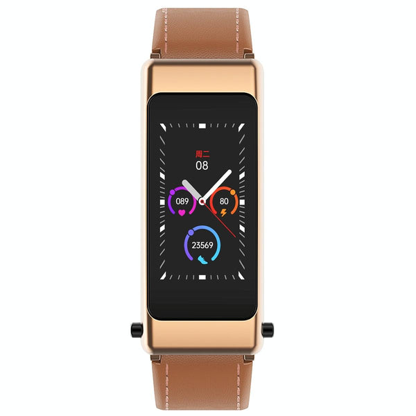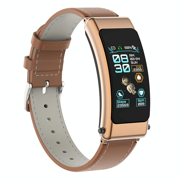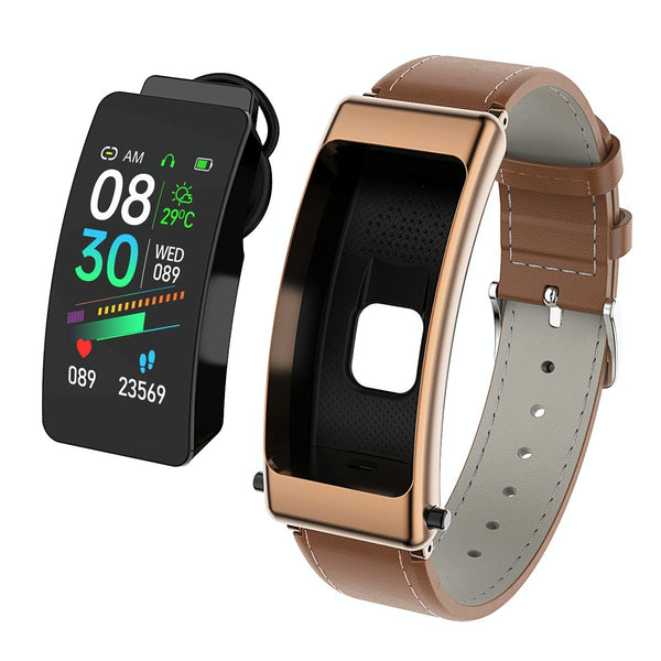 K50 1.08 inch Leather Band Earphone Detachable IP67 Waterproof Smart Watch Support Bluetooth Call(Brown)