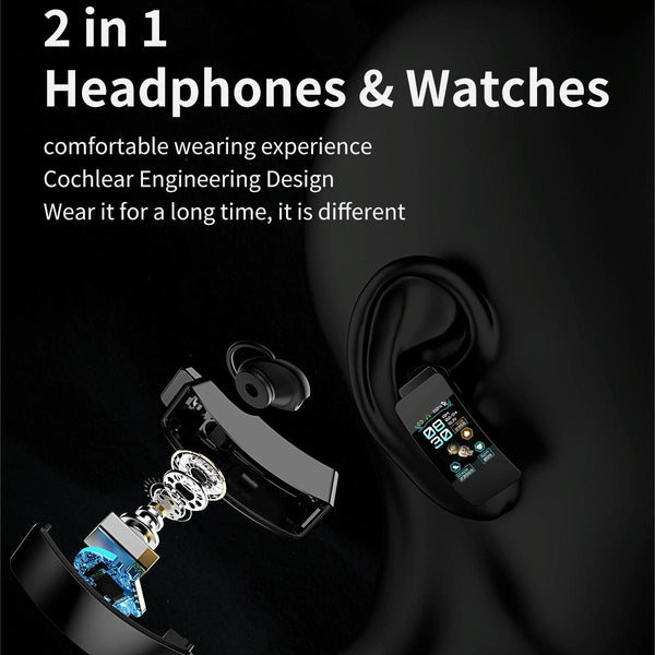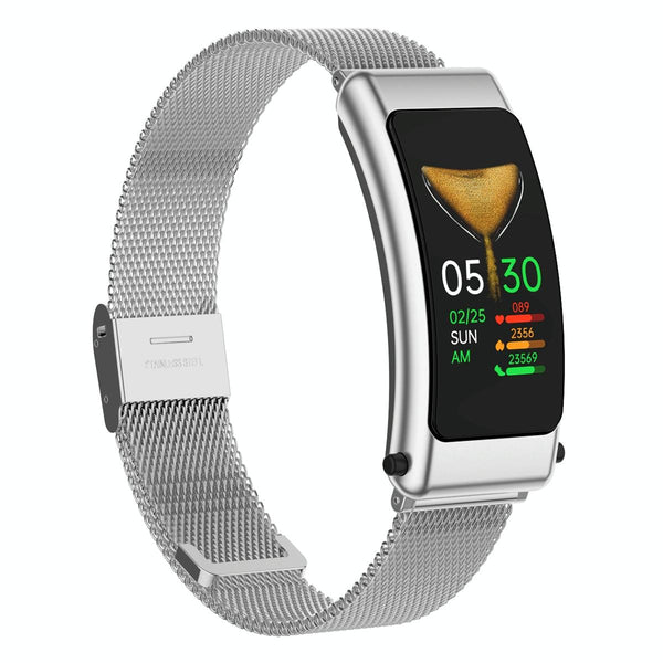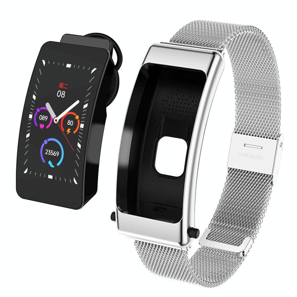 K50 1.08 inch Steel Band Earphone Detachable IP67 Waterproof Smart Watch Support Bluetooth Call(Silver)