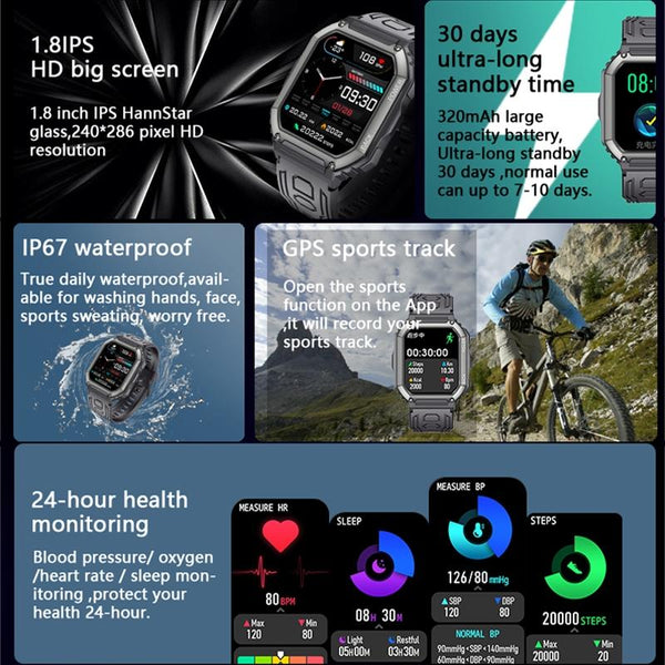 K6 1.8 inch IP67 Waterproof Smart Watch, Support Heart Rate / Sleep Monitoring(Green)